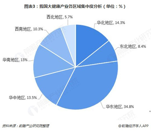 图表3:我国大健康产业各区域集中度分析(单位:%)