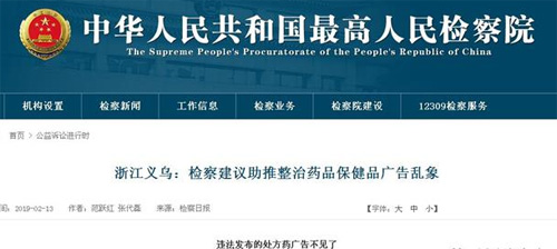 浙江义乌:检察建议助推整治药品保健品广告乱象