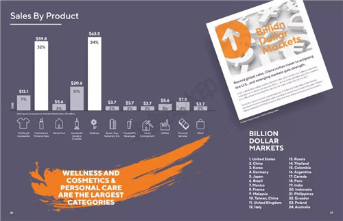 《2017-2018年全球直销报告》还指出,目前达到十亿美元市场的国家共有24个,分别是美国、中国、朝鲜、德国、日本、巴西、墨西哥、法国、马来西亚、中国台湾、英国、意大利、俄罗斯、泰国、哥伦比亚、阿根廷、加拿大、秘鲁、印度、印度尼西亚、菲律宾、厄瓜多尔、波兰、澳大利亚。