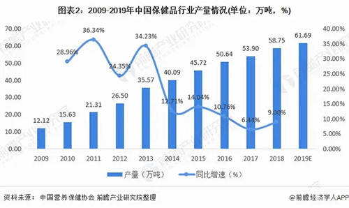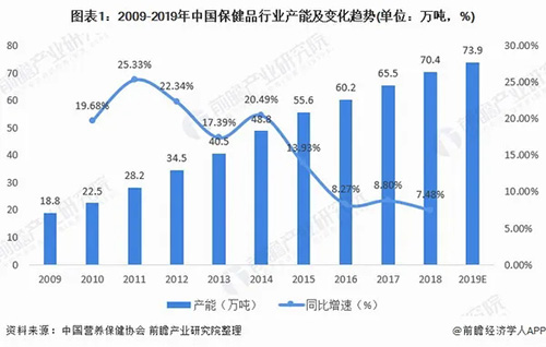 2019保健品市场规模为3965亿 产能近73.9万吨