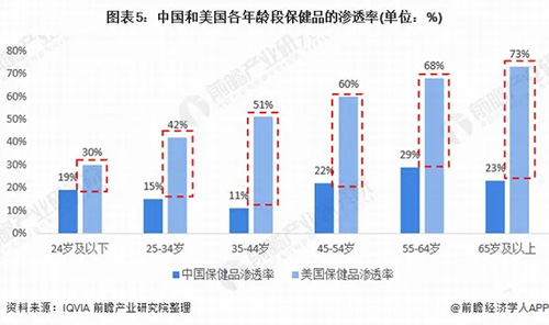 中美保健品渗透率差距较大,我国保健品渗透率有待进一步提高