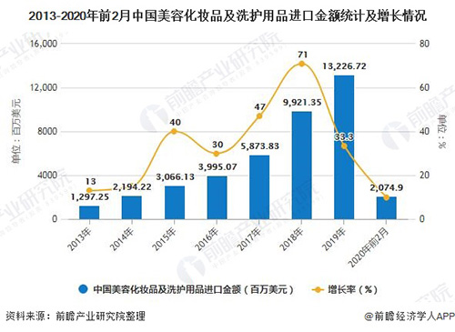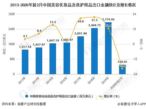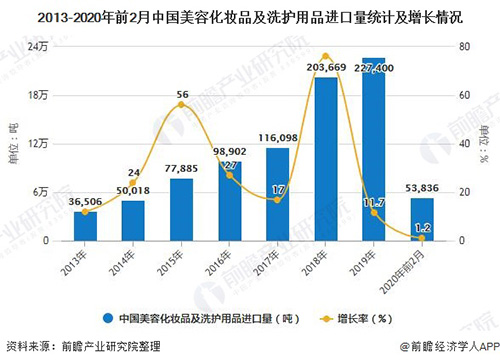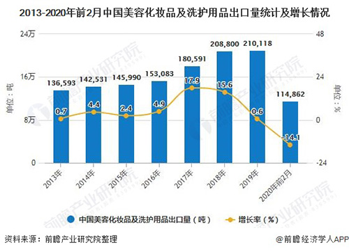 2020年1-2月中国美容化妆品及洗护用品出口量突破10万吨