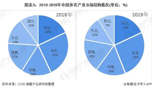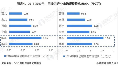 2019年华东地区养老产业规模为1.56万亿元,为全国区域最大养老市场