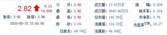 闻此消息,已被ST处理的康美药业在二级市场上再度疯狂,5月15日开盘即封死涨停板,上涨4.83%,报价2.82元/股,总市值140亿元,收盘仍有15万余手、超过4500万资金等待追涨。