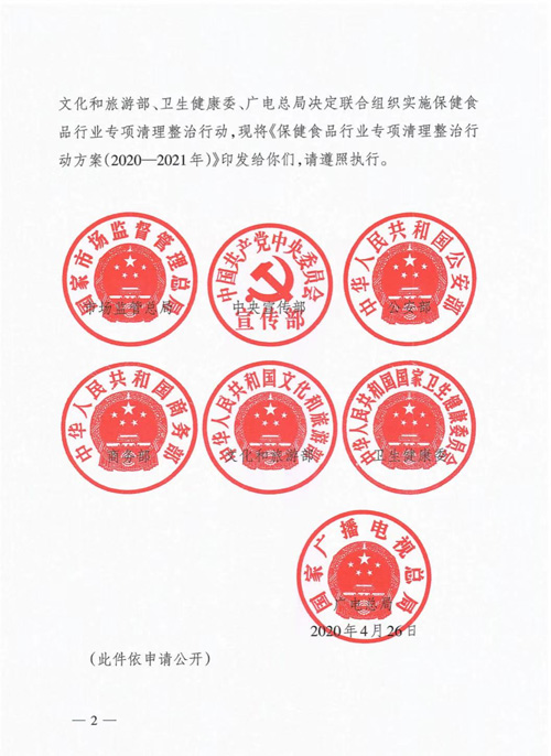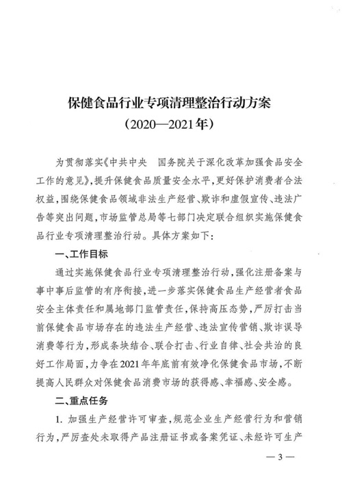 保健食品行业专项清理整治行动方案(2020—2021年)