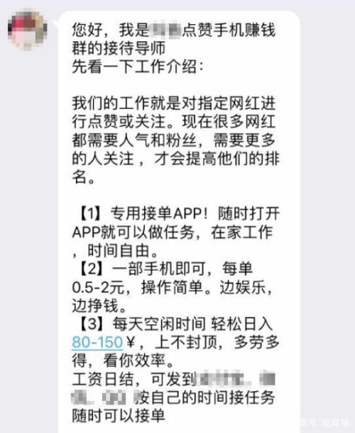 人工刷单,是指通过社交软件,招募真人手动下单。通常组织者会拉一个群,发布各种刷单任务,群里谁有空闲谁就接单,交易完成后退回费用。由于用的是一般消费者的账号,所以机器也无从识别。