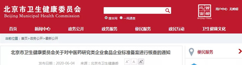 庶正康讯从北京市卫生健康委官网获悉,为加强食品企业标准备案后管理,结合备案实际情况,决定对中医药研究类企业已经备案的食品企业标准进行一次核查。