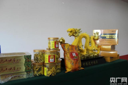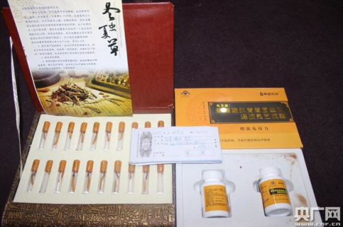 在现场会议室内,民警查获写有“冬虫夏草”的礼盒49盒,金属龙工艺品40箱,银色金属杯子39盒,所谓虫草牙膏3盒,还有写着“虫草菌丝藏红花”的足浴粉113袋、金丝皇菊茶28盒,以及各种形式的礼品卡、会员卡数百张。经查,当天销售的“明星”产品,某品牌“蝙蝠蛾拟青霉菌丝体蜂胶灵芝胶囊”210盒,每盒销售单价高达7990元。