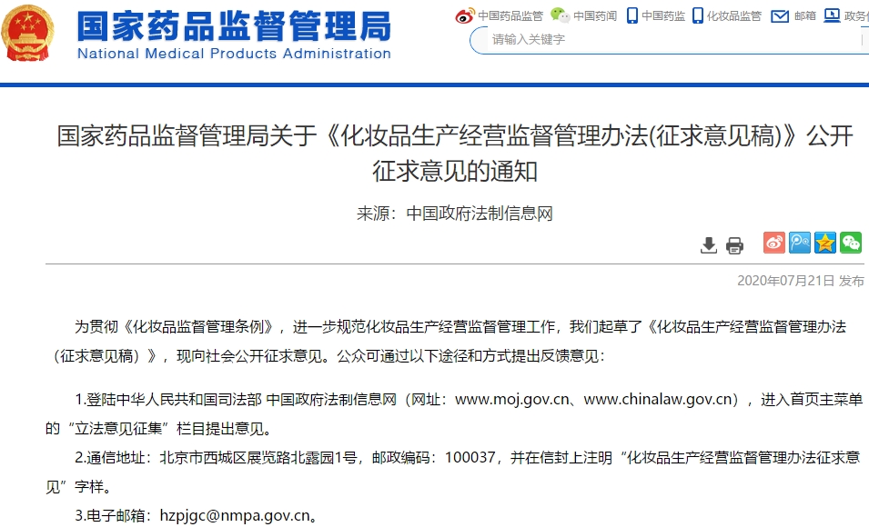 面对国内“最美丽”的行业,7月21日国家药监局公布了《化妆品注册管理办法(征求意见稿)》和《化妆品生产经营监督管理办法(征求意见稿)》。