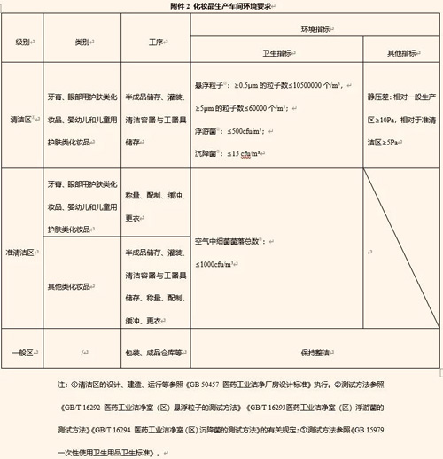 原105条第39条规定,生产车间应按产品工艺环境控制需求分为清洁区、准清洁区和一般区,但并未作除“压差”外的具体要求说明。105条第40条规定,生产眼部用护肤类、婴儿和儿童用护肤类化妆品的灌装间、清洁容器存储间应达到30万级洁净要求。生产区之间应根据工艺质量保证要求保持相应的压差,清洁区与其他生产区保持一定的正压差。