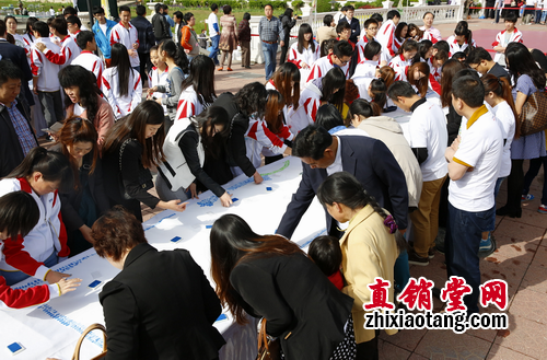 图为:现场公众热情参与吉尼斯世界纪录挑战