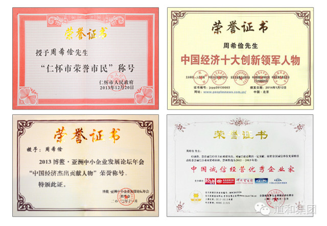 6. 2013年11月30日,2013博鳌.亚洲中小企业发展论坛年会向道和集团董事长周希俭先生授予了”中国经济杰出贡献人物“的荣誉称号