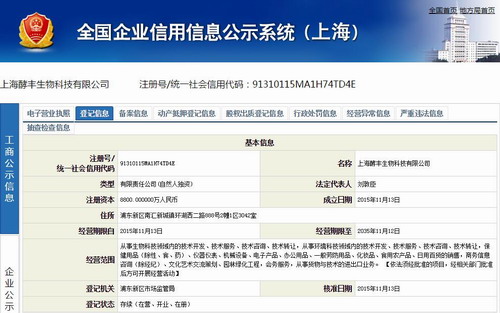全国企业信用信息公示系统信息显示,该公司注册资金8800万。法人是刘敦臣。据知情人士透露,江西百禾药业作为上海酵丰生物科技有限公司供货方,签订了一年的供货合同,到11月份就不会给酵丰公司供货了。这样就意味着,酵丰公司的直销员就没有销售江西百禾药业中药酵素的资格了。
