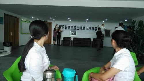 经销商突然冲进天津铸源办公场地拉横幅拍照