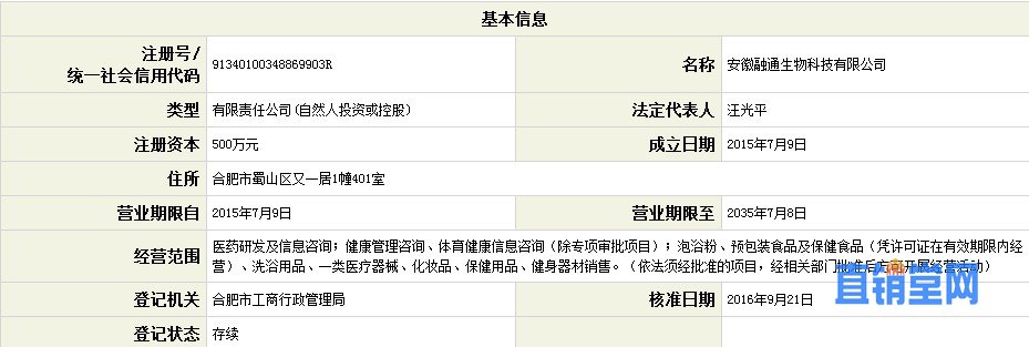 直销人爆料安徽融通生物科技有限公司(以下简称融通生物)采用直销模式运作市场。