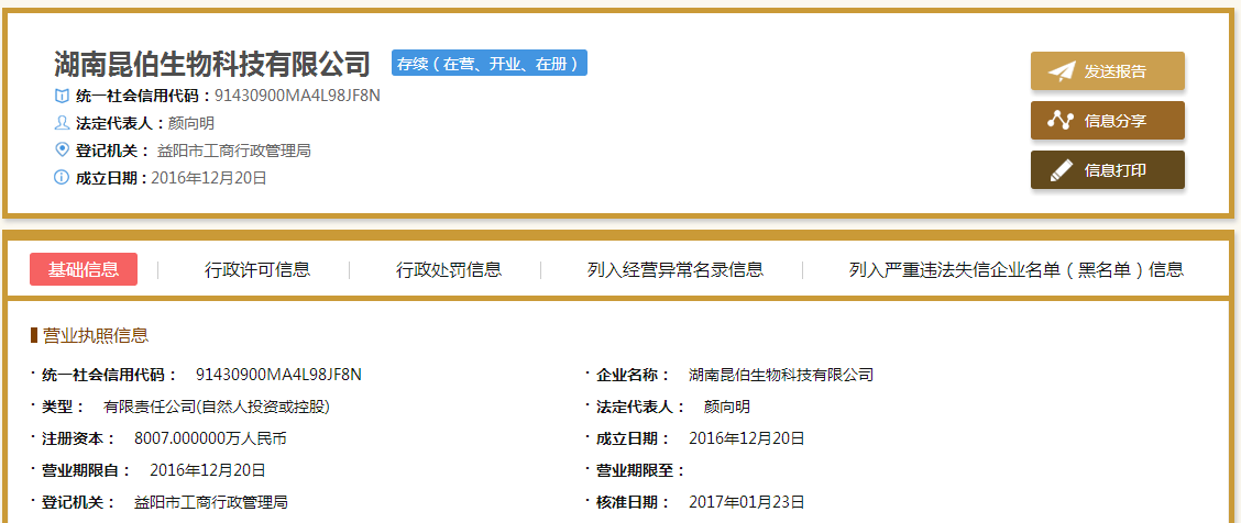 直销头条网编辑在国家企业信用信息公示系统查询到昆伯生物成立于2016年12月20日,注册资金8007万人民币,实缴为0元。法人是颜向明,股东是周桂平和颜向明。