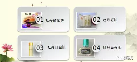 御媛丹主要产品为牡丹系列各类产品: