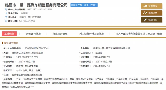 临夏市一带一路汽车销售服务有限公司涉水直销