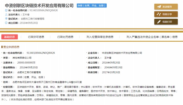 直销头条网编辑在国家企业信用信息公示系统查询到中资创联成立于2016年09月20日,注册资金20000万人民币,法人代表王叶春,执行董事兼总经理王叶春,监事倪乐义,股东有王叶春、锦辉国际控股集团有限公司。