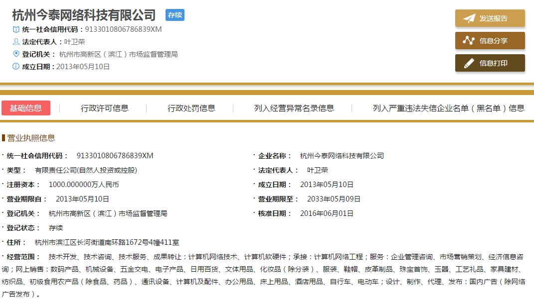 杭州今泰网络科技有限公司涉水直销