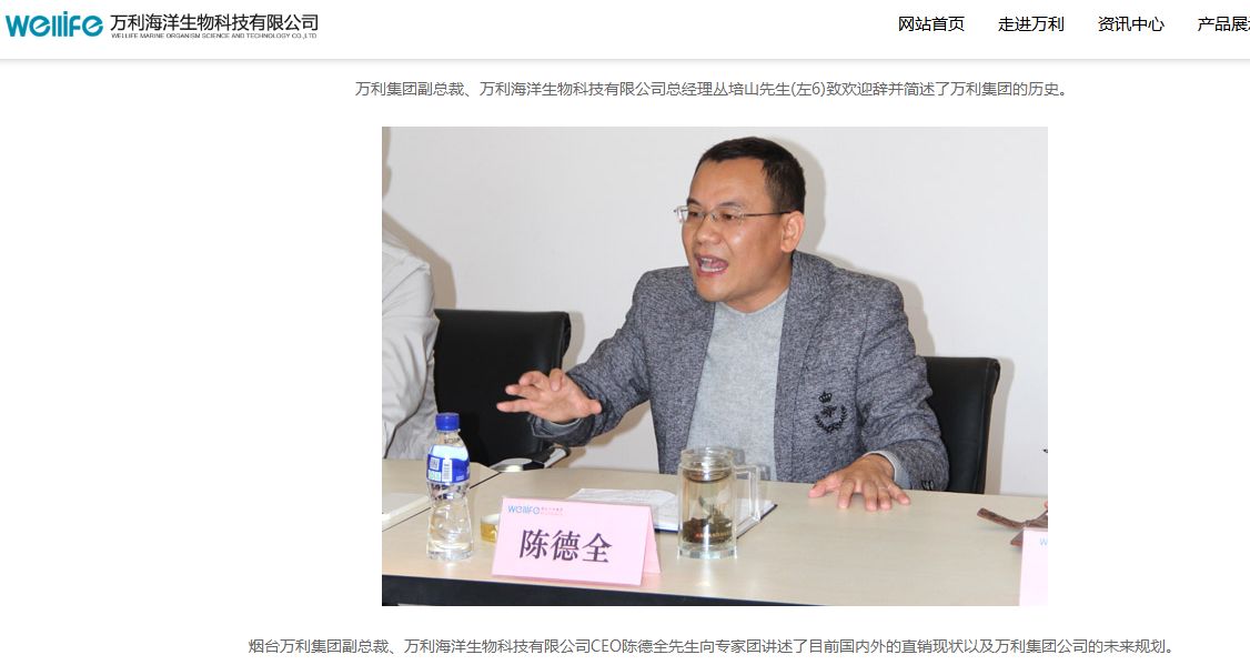 2017年11月,据官网可知,万利海洋CEO为陈德全,同时也是烟台万利集团副总裁。