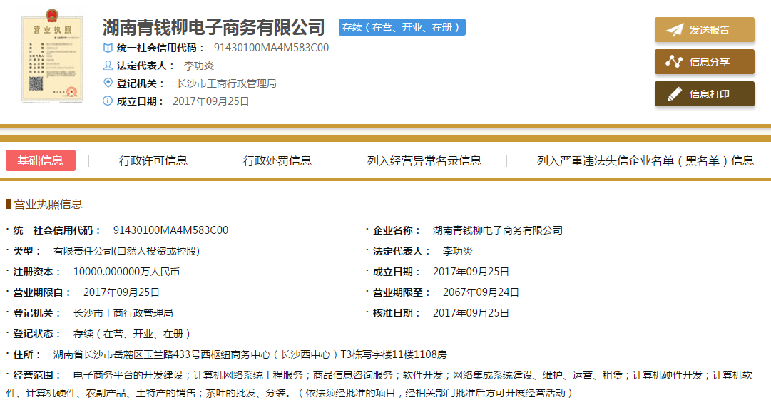 湖南青钱柳电子商务有限公司涉水直销