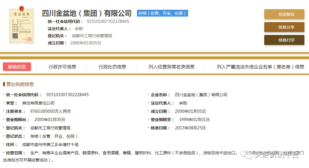 直销头条网编辑在国家企业信用信息公示系统查询到四川金盆地成立于2000年01月05日,注册资金9760万人民币(实缴资金9760万元)。法人代表余刚,执行董事兼经理余刚,监事杜崇容,董事有强荣、陶丽、肖探、余威、马骧、陶术华,自然股东有强振平、崇州市金盆地酒业有限公司、四川崇州蜀乐春酒业有限公司、四川金盆地房地产开发有限公司、深圳市元维财富投资管理有限公司、信达投资有限公司。