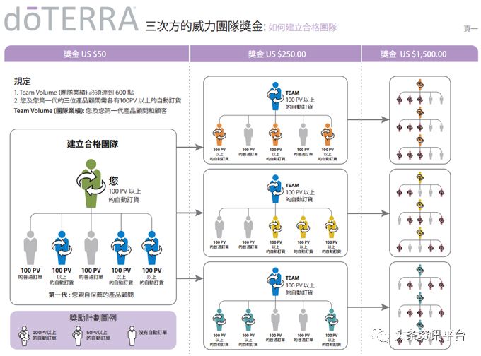 8、当完成这项三次方的威力团队奖金 ( US $50.00, US $250.00 和 US $1500.00 ),产品顾问可开始第二組的三次方的威力奖金。你的第一代下线已算在第一次的奖金內将不可參与其他的奖金。