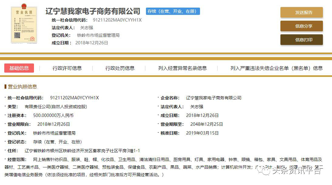 辽宁慧我家电子商务有限公司涉水直销
