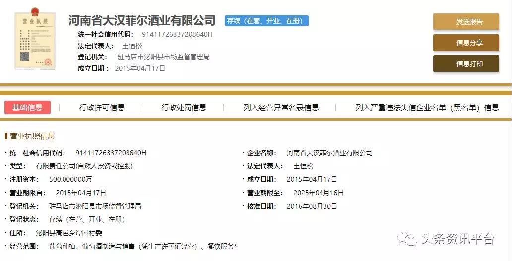 头条资讯平台在国家企业信用信息公示系统查询到河南大汉菲尔成立于2015年04月17日,注册资金500万人民币(实缴资金338.5万元)。法人代表王恒松,执行董事兼总经理王恒松,监事苏卫兵,自然人股东有苏卫兵、王恒松。