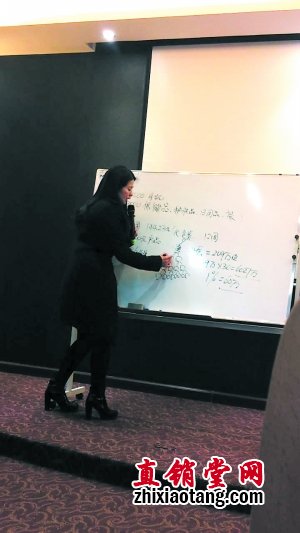 随后,一位自称叶美金的女士向参会人员详细讲解了天福天美仕的营销模式和创富奇迹。她以投资7500元为例,告知能拿到一部4000元的手机,以及3500元的护肤品、保健品、日用品和茶。她一再表示,现在加入天福天美仕还可以实现“一次投资,五大利润”,其中利润一叫“还本奖”,连续52周返还144.23元的代金券,代金券可以累计12周,用于购买公司的产品;利润二叫“见单奖”,也叫“懒人奖”,就是完成一个单能拿30元提成,并可以享受在20层下线内,每一笔成单的佣金。