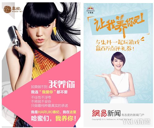 事实上,早在2014年情人节,春纪就曾推出“我养你”,一块块印有“我养你”巨大字样的广告牌,齐刷刷地出现在全国多座城市的公交站,引起众多路人尤其是年轻情侣的关注,有关该话题的讨论也迅即在线上线下发散开来,不断地在强化“养你、养你、养你,养你肌肤一辈子”的概念,让春纪“我养你”的情人节营销事件迅速登上各大媒体头条,成为媒体热议品牌。