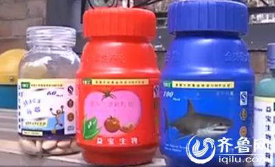 药瓶上都贴着山东益宝生物制药品等字样(视频截图)
