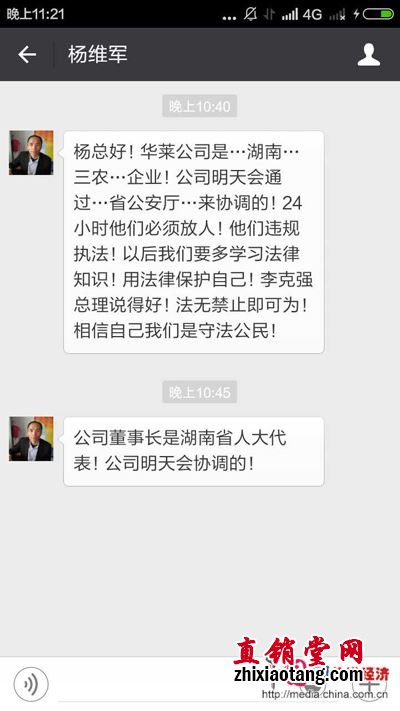 华莱公司团队负责人人杨某威胁短信
