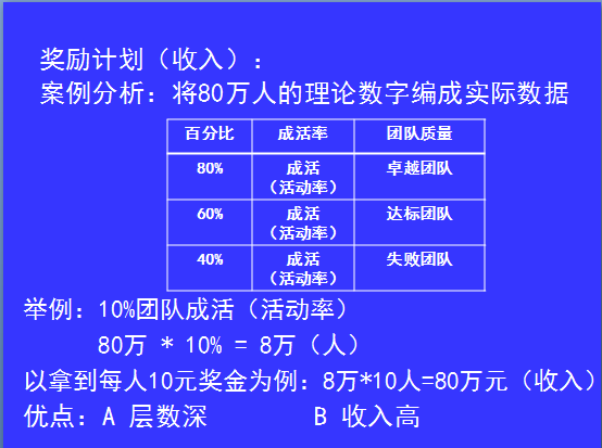 我是一个刚出入社会的90后,没有工作经验和社会阅历,偶然机会在成都旅游的时候认识了李姐(李某琪)。她说,她专业美容行业十几年,和我聊天中发现我有想找工作,并且是一个单纯有梦想的女孩子,她跟我说,她现在在做一个非常好的项目,全新的模式,可以轻松月入过万。然后提到克丽缇娜,并说克丽缇娜和克缇是同一个产品线,克丽缇娜转型做直销。我并没有接触过直销,抱着怀疑的态度上网搜索了克丽缇娜,才知道原来是美容院,所以我当时以为也是在美容院工作,然后李姐就说,时机非常好,市场一大片空白,因为这种新模式才开始,叫我先占个位子,越早越好,就和我讲了几条奖金制度。她说例如:“推荐进入白金会员25000BV乘以1%就是250.那么我们12层三三复制下来总人数就是797160人,见点250元,就是199290000元!复消每人每月500BV乘以1%再乘以797160人就是398万元。当然这是理论数字!我们把他砍掉一半,再砍掉一半。收入也会超过5000万元。就是出现大象腿养老也不成问题了 ……讲多了我也不懂,只要记住,占个位子能拿12层的钱,推荐一个朋友,本金全返,没有任何风险,当时,我就说我考虑一下。