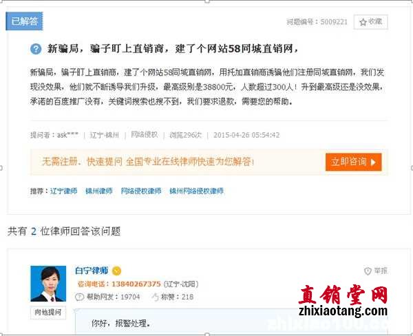 58同城直销网:网友曝用“托”行骗 众多经销商维权无门