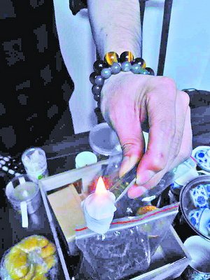 后滨路的“安然纳米生物波汗蒸养生馆”的负责人叶先生说:“汗蒸房内铺设有纳米被,含有纳米大小的矿石。”叶先生拿出一条号称含有纳米矿石的布,用打火机点燃,只见布条熔化成了岩浆状,冒出白烟。“普通布条燃烧后有臭味,冒黑烟,但纳米布条不会。”叶先生称,纳米布条燃烧后,纤维挥发,留下的只有矿石。他用熔化后又冷却的布条敲击玻璃杯,发出“叮叮”声,“这是不是石头撞击玻璃的声音?”
