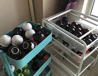 不仅是和平这家店,在铁西万达公寓的24层的尚赫美容沙龙店内,记者在一个角落里看到两个推拉柜上摆满了大大小小的罐子。