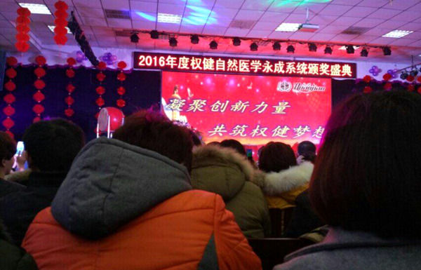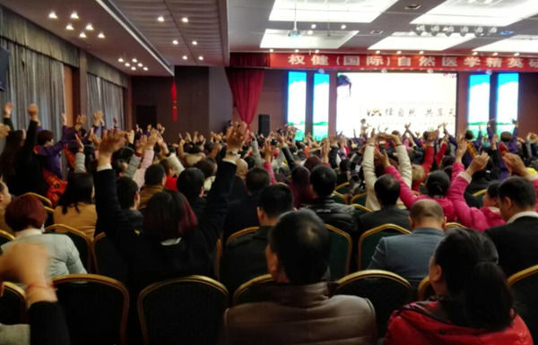 曾到过权健集团天津总部参观的人士透露,在主持人与观众的互动下,现场情绪高亢,极为震撼。