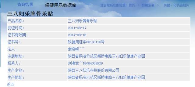 (陕西食药监官网上“骨乐贴”的查询结果)