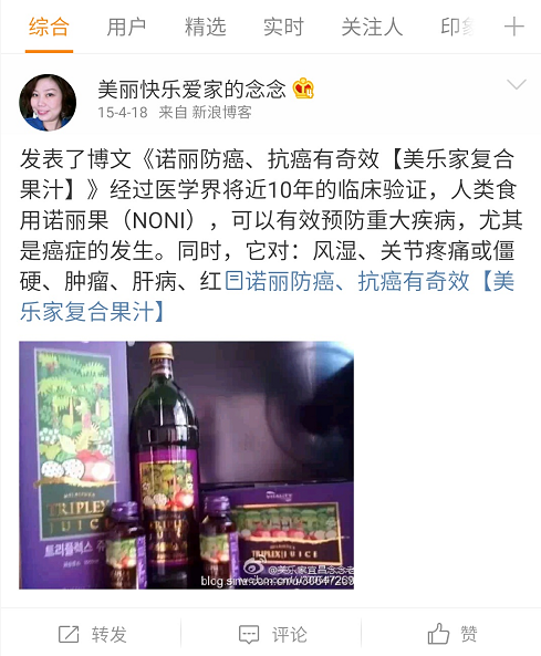 其下线代理在宣传产品过程中也经常夸大、虚假宣传,比如其果汁可以治疗癌症,其某一款保健品(其实最多算健康食品,因为既没批准文号又没蓝帽标识)具有治疗静脉炎的作用。食品、保健品在销售过程中不允许出现治疗功效,而其不仅出现了还夸大虚假宣传。