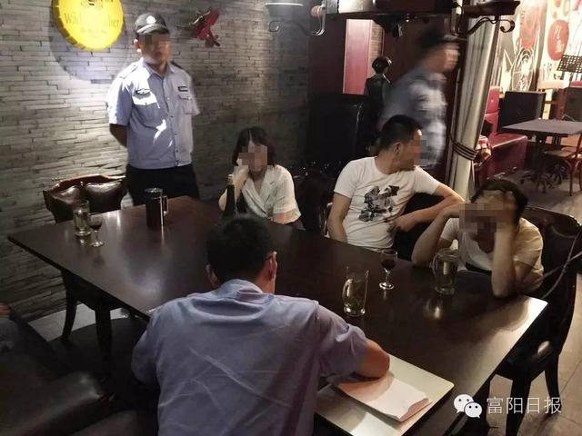 当晚7点10分左右,市场监管局与公安富阳分局共40名执法人员来到这家西餐厅。只见里面光线比较昏暗,有10多个人分几张桌子三三两两坐着聊天,一个比较明显的特点就是每张桌上都有一瓶酒,有的桌子上还摆着倒了半杯红酒的杯子,但桌上的下酒菜几乎没有,似乎这些人都只为品酒而来。每张桌子上,客人说话的声音都非常小,似乎怕被别人听到而故意压低了噪音。