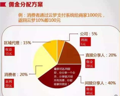 如上图,显然云梦生活仍然是采取靠拉人头返利赚钱的模式,以“直接分享或间接分享赚取佣金”,即推荐分享拿“返利”,这是典型的传销手法。而长城币的投资主要靠币的价格上涨获取收益,即静态收益,或者发展更多代理商。