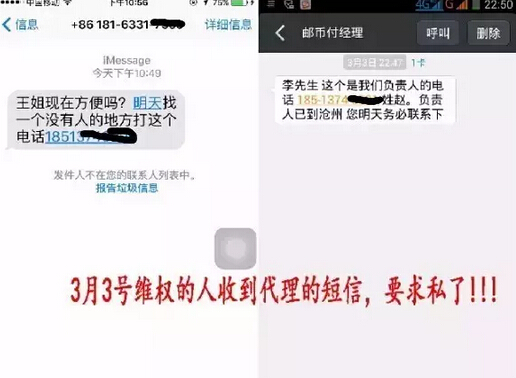 当晚,维权者大部分收到各代理商的短信