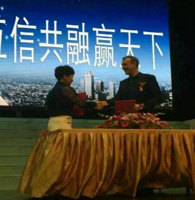 2016年6月23日,泰山币变身洛德盾,虚构对接所谓的洛斯柴而德家族,聘请国外诈骗团伙合作联合诈骗,上图中,跟梦祉君签约的外国人签约后居然合作书都没有带走。