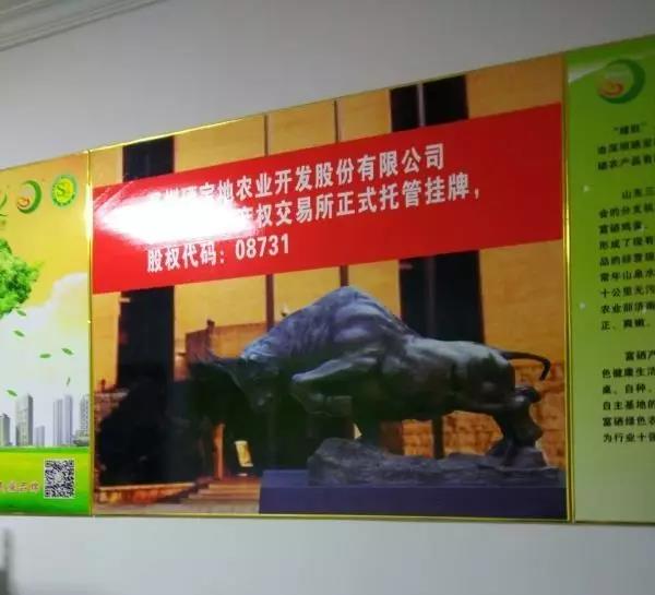 「网友晒出的某三旺工作人员办公室墙上张贴着深圳硒宝地股份有限公司在深圳联交所托管挂牌的信息。」