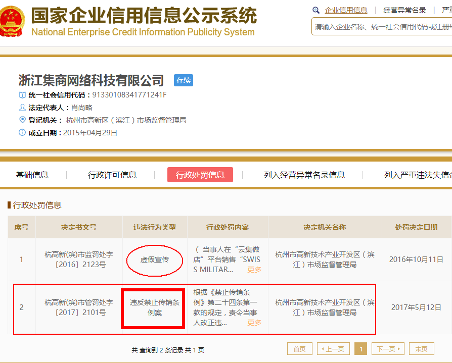 然而,真相是,这家公司的商业模式被定性为“传销”。根据杭州滨江工商出具的《行政处罚决定书》可见,认定云集微店属于组织策划传销违法行为,没收违法所得808万,再罚款150万,合计罚没958万并上缴国库。