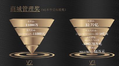 1900元投资的V2级别是3000元封顶,是日封顶?还是周封顶?还是月封顶呢?还是这个分红根本就是分到3000元就没有了?其实你完全不知道多少人来分、平台商城每天业绩多少?而且奖金是按级别人数比例来分!这不是圈套是什么?
