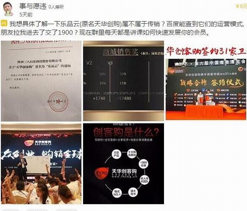 另外我们再来看看天华创客购其实涉及的公司有山东西瓜电子商务有限公司、山东瞻琳生物科技有限公司,其实就是昔日的“微微国际”微商团队。小编通过相关途径了解到,今年9月份“天华创客购”平台更名为“乐品购”并挂靠在直销企业陕西三八妇乐公司旗下。