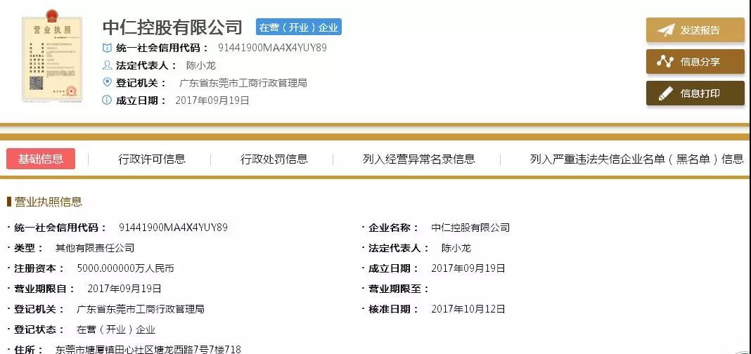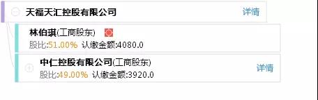 记者从天眼查查阅天福天汇的工商登记资料发现,林伯琪个人占51%的股份,为控股股东,另一家股东为中仁控股公司。记者进一步查询发现,中仁控股公司也是今年9月份刚刚注册成立。